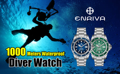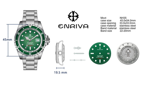 ENRIVA Men's 1000m Automatic Pro Diver Watch Aluminium Bezel Diving Watches Self-Wind Professional Diver Watches for Men-Green
