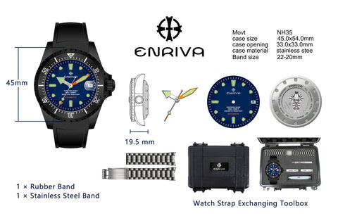 ENRIVA Men's Automatic 1000m Pro Dive Mens Watch Rotating Ceramic Bezel Diving Watches for Men-Blue